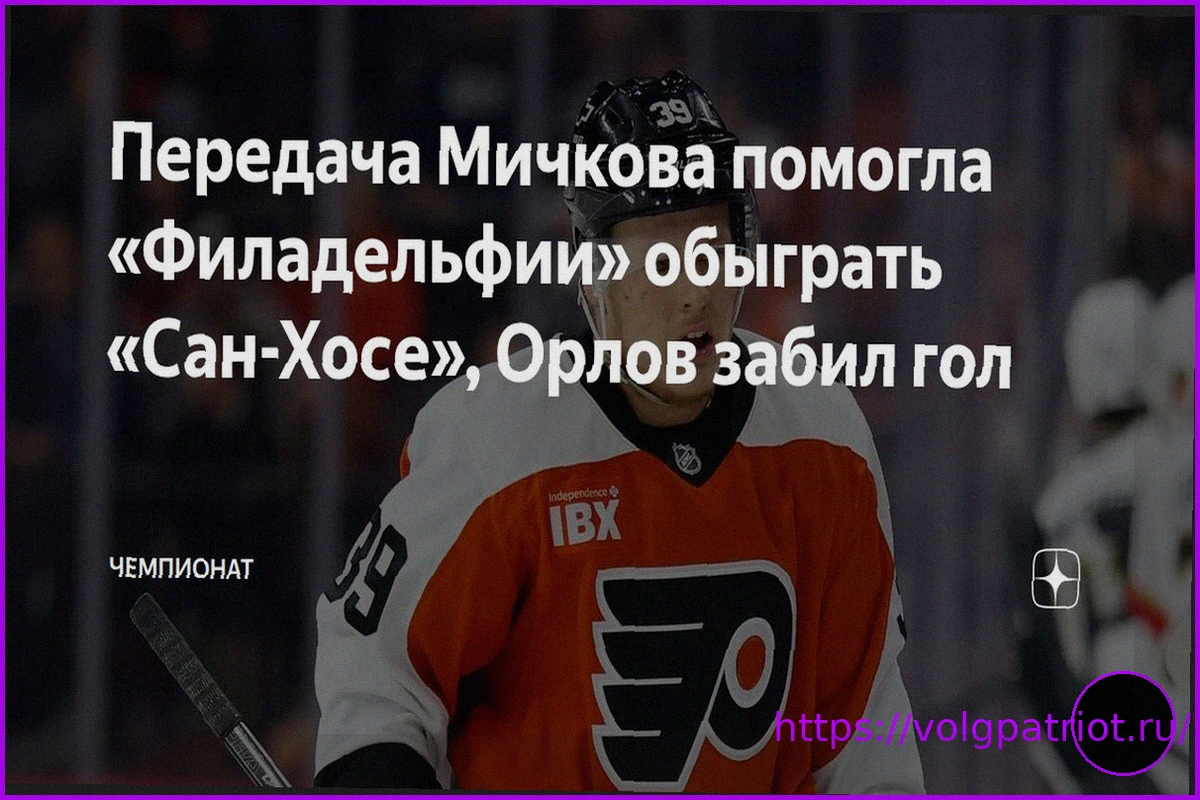 Российский защитник Дмитрий Орлов, выступающий за «Сан-Хосе», был признан второй звездой прошедшего домашнего матча НХЛ против «Филадельфии», который завершился поражением его команды со счетом 1:4. Информацию подтвердила пресс-служба лиги.