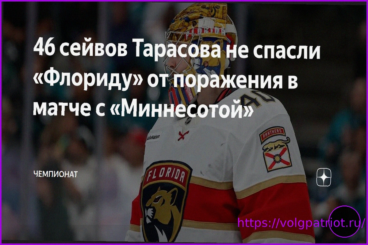 Российский вратарь Даниил Тарасов, выступающий за хоккейный клуб «Флорида Пантерз», был отмечен как вторая звезда домашнего матча регулярного чемпионата НХЛ. В этой встрече «Флорида» уступила команде «Миннесота Уайлд» со счётом 2:3.